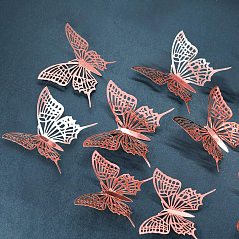 Наклейки Бабочки № 14 бумага металлик 12 шт розовое золото Наклейки Бабочки № 14 бумага металлик 12 шт розовое золото