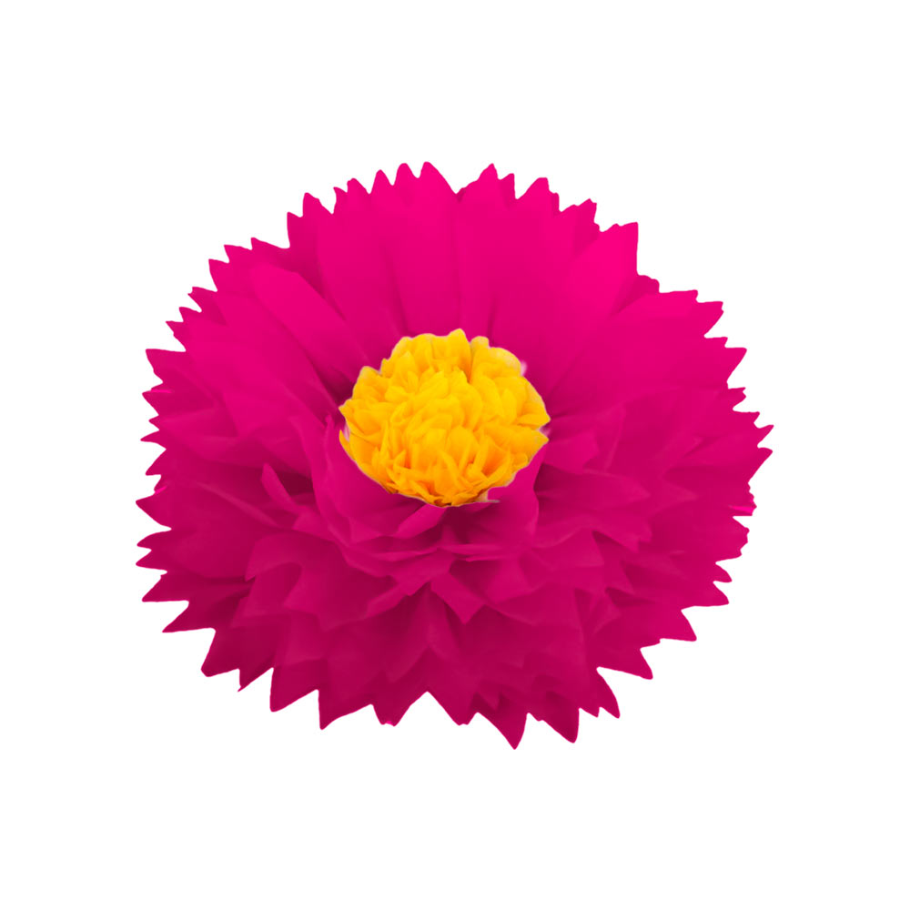Бумажный цветок 30 см малиновый+ярко-желтый
