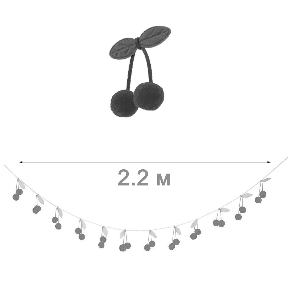 Количество вишенок на гирлянде 24 шт., общая длина составляет 2,2 м.