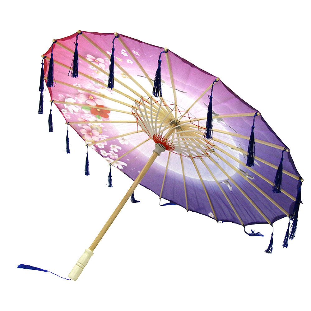 Китайские тканевые зонтики цветочные с кисточками 82х54 см