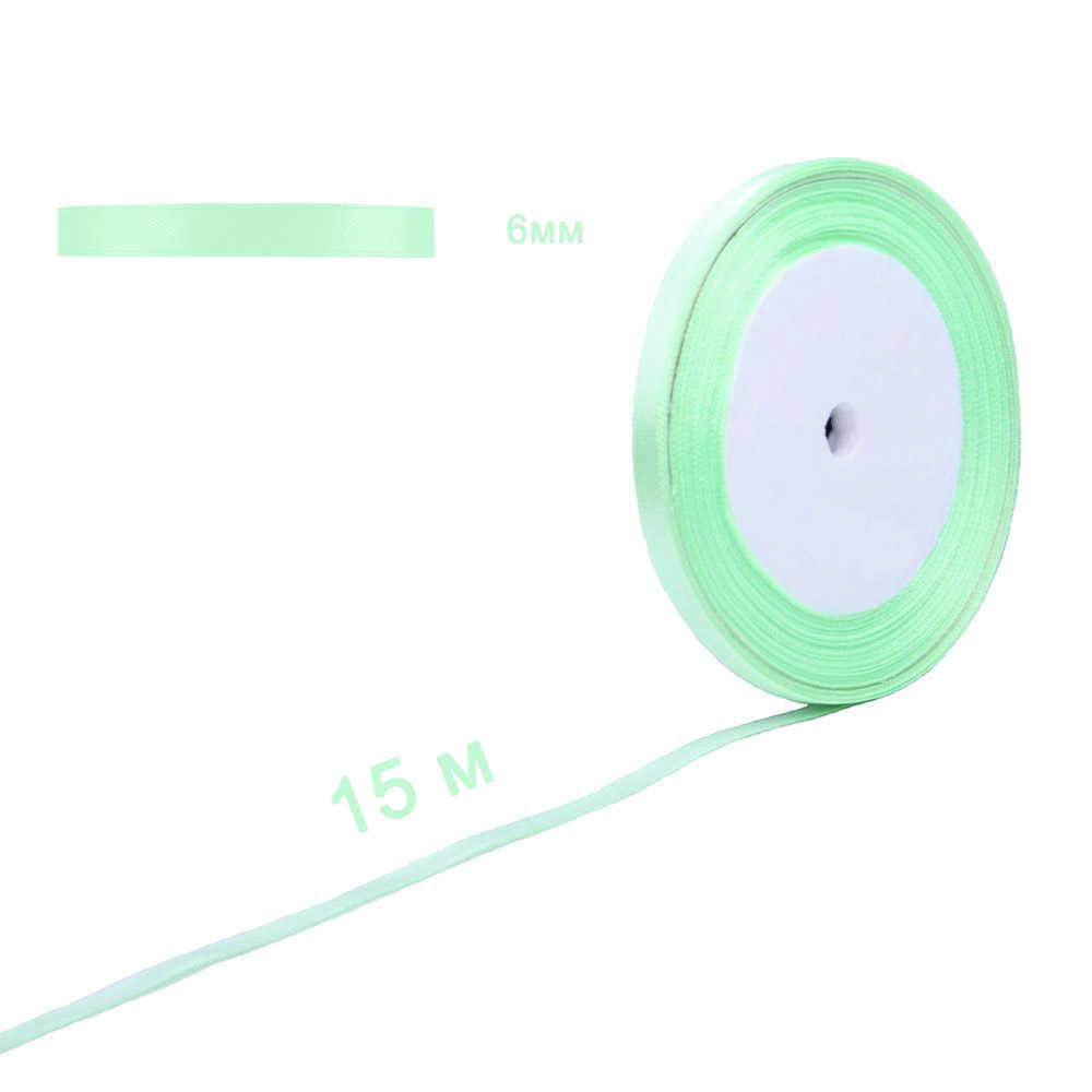 Лента атласная салатовая 6 мм х 15 м