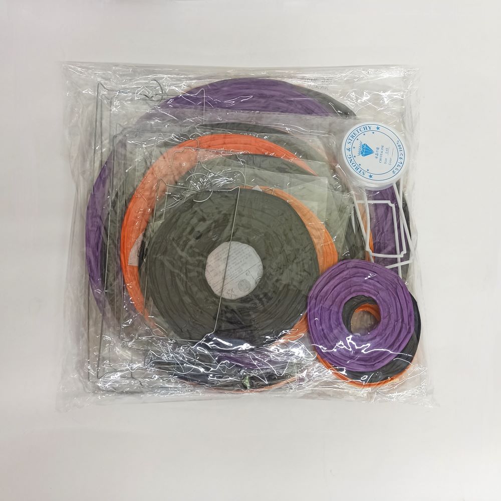 Набор подвесные фонарики 15 шт + леска, сиреневый+черный+оранжевый