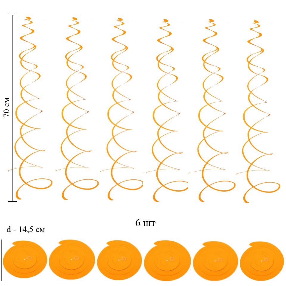 В комплекте 6 шт, каждая спираль снабжена петлей для крепления к потолку или стене.