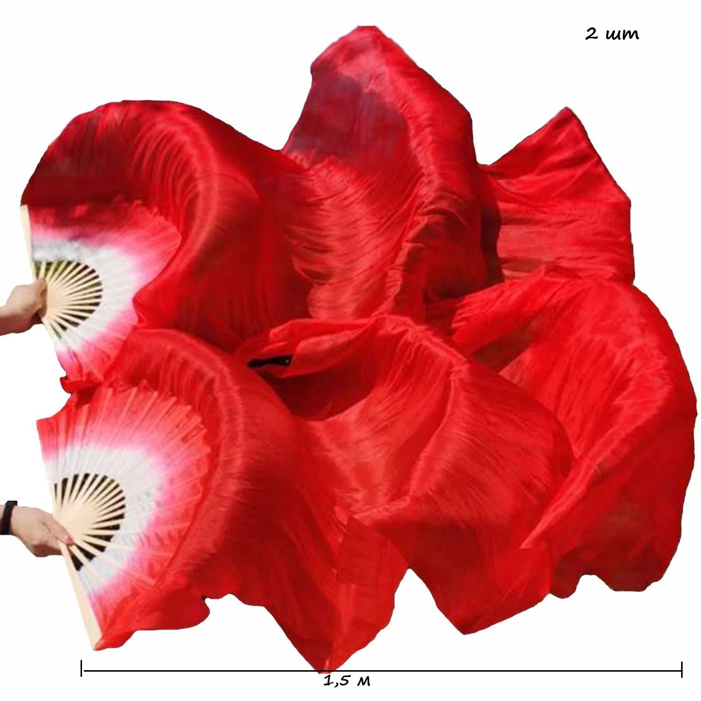 Веер-вейл для танцев 2 шт 57см х 1,5м №3, красный