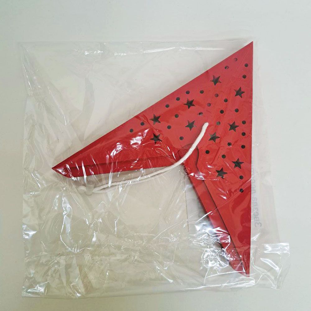 Звезда девятиконечная диаметром 35 см, изготовлена из  картона с перфорацией в виде точек и мелких звезд.